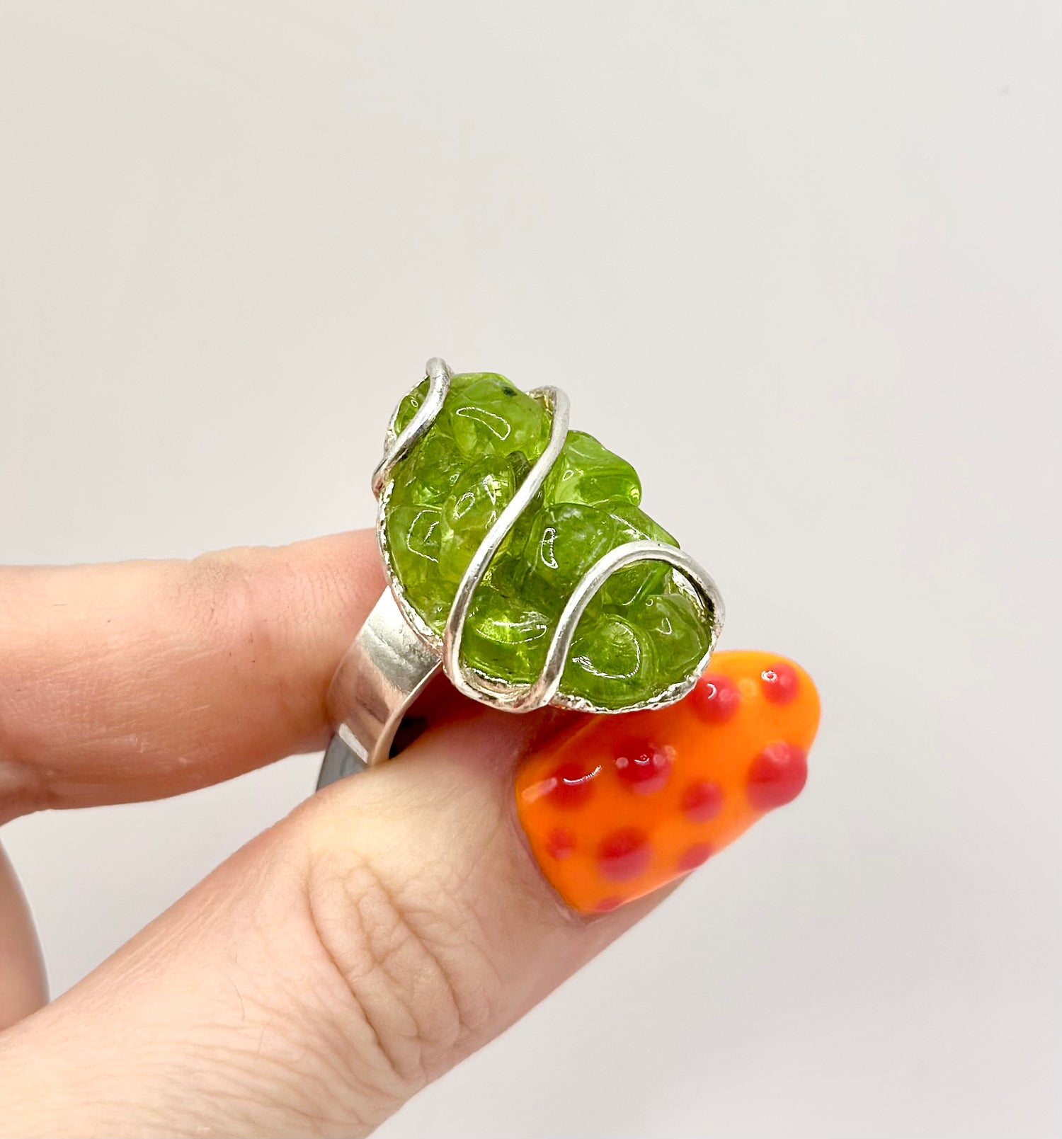 Vintage Silver Ring Large Teardrop Stone size T1/2