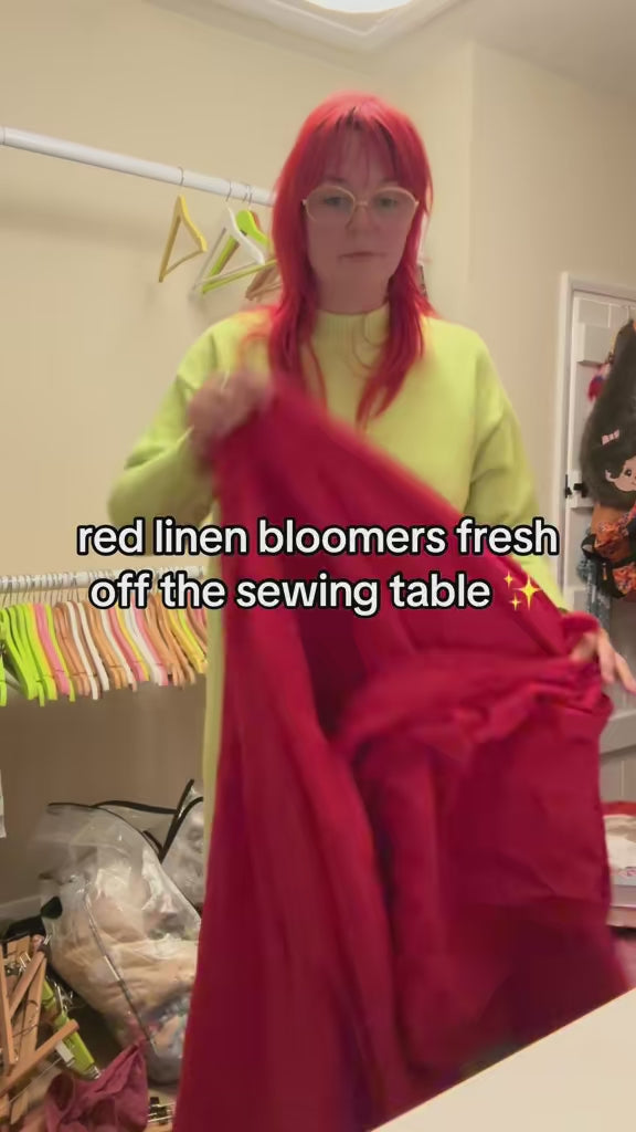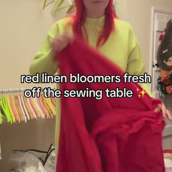Bloomer Trousers | Red Linen with Vintage Lace | Made to order