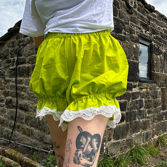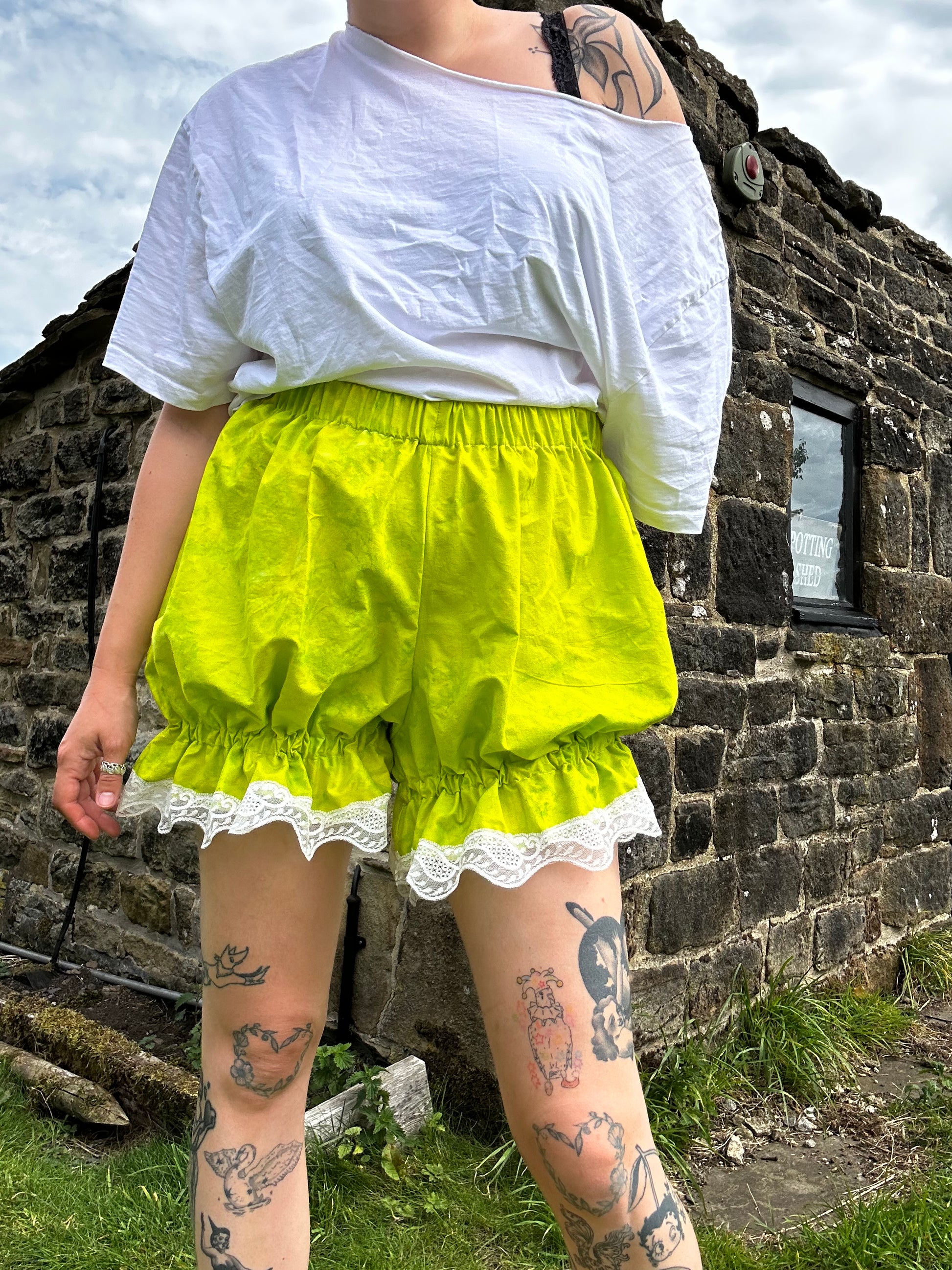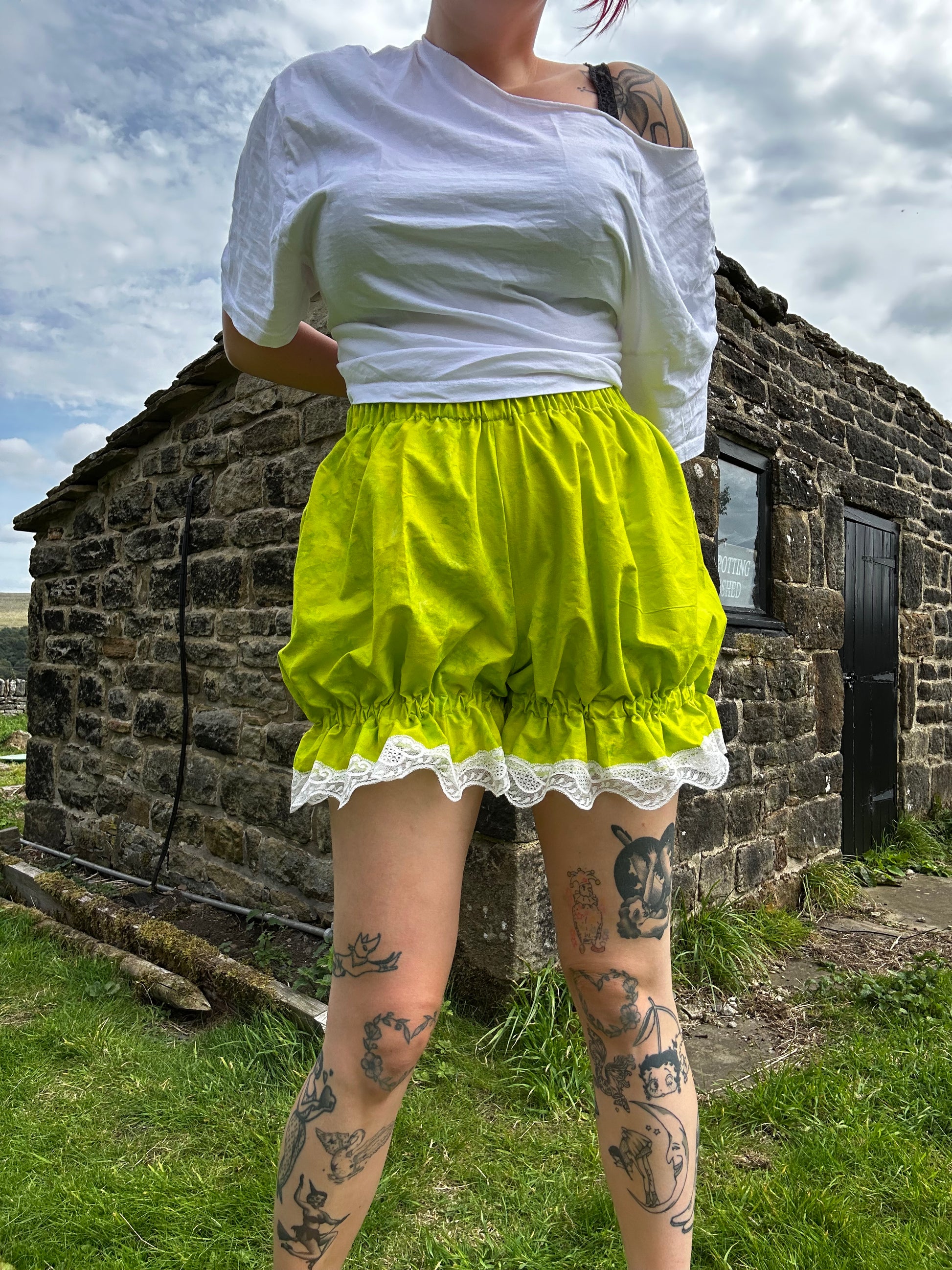 Mini Bloomers // Lime Green Cotton with Lace Trim // size M (UK 12-14)