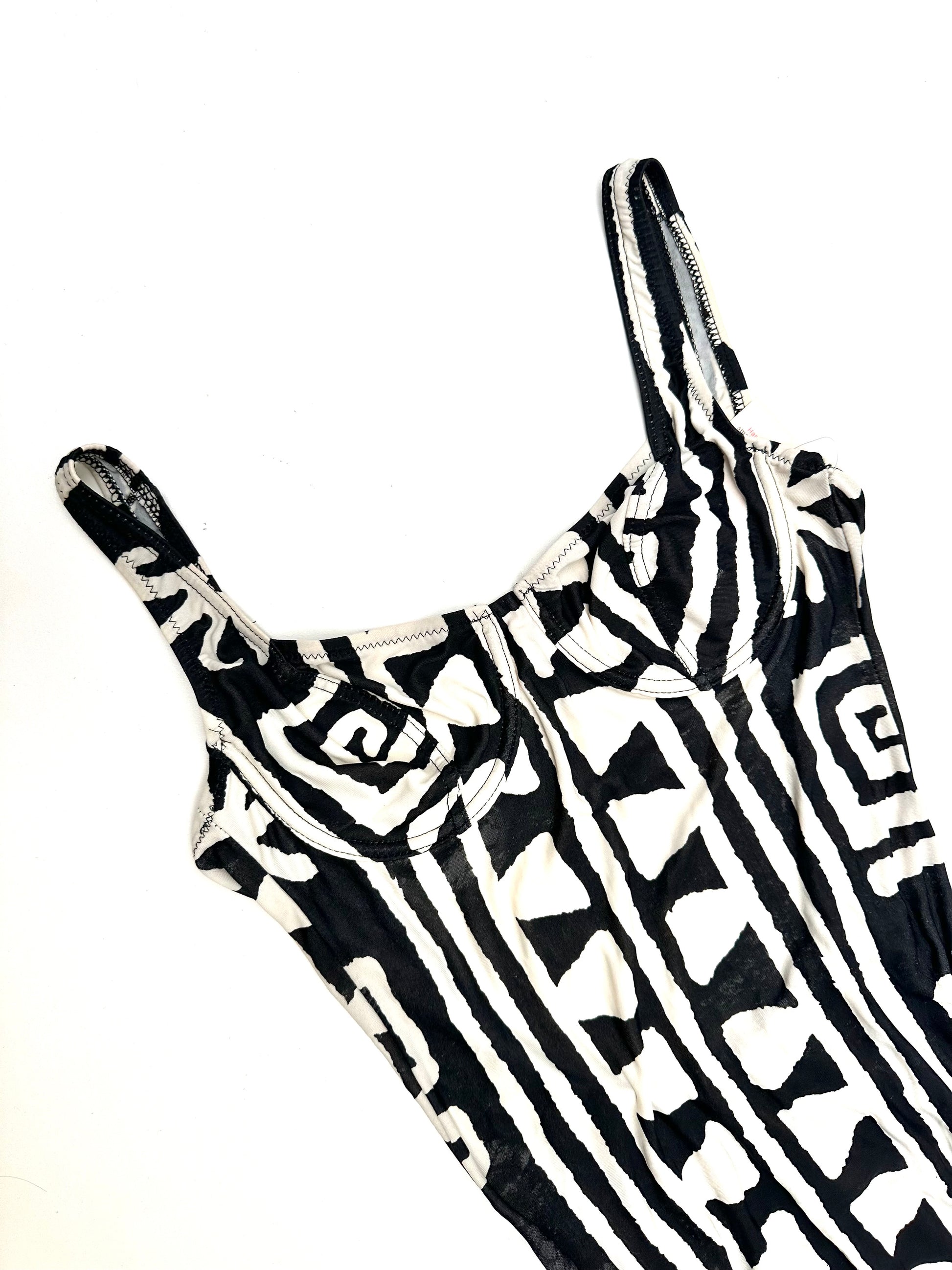 Vintage Swimsuit with Bust Cups in Black and White Print